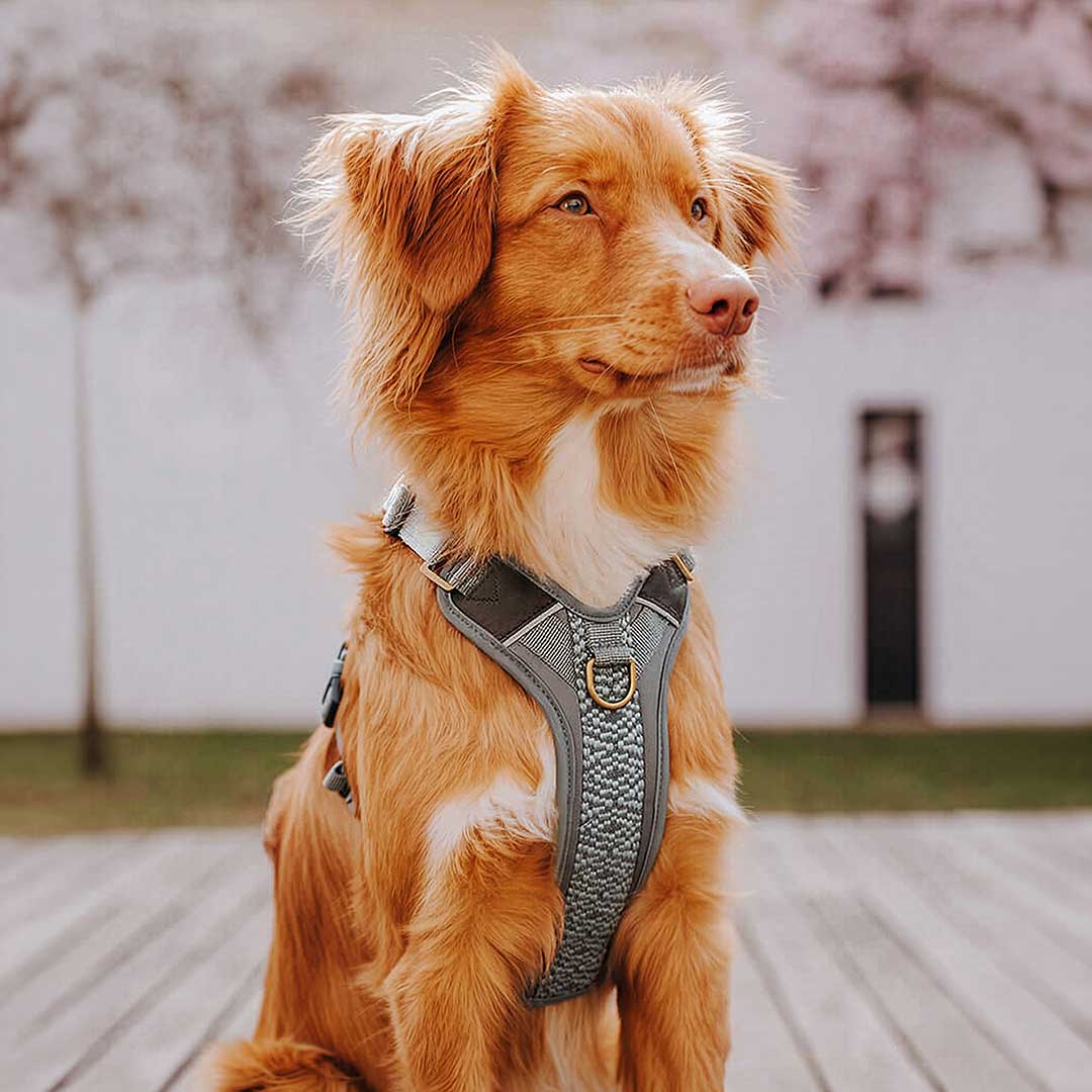Das Geschirr besteht aus strapazierfähigen, doppelt vernähten Materialien und ist mit hochwertigen D-Ringen aus Zinklegierung ausgestattet – für eine hohe Zugkraft und lange Haltbarkeit. Reflektierende 3M-Nähte sorgen für bessere Sichtbarkeit bei Dunkelheit oder schlechtem Wetter.